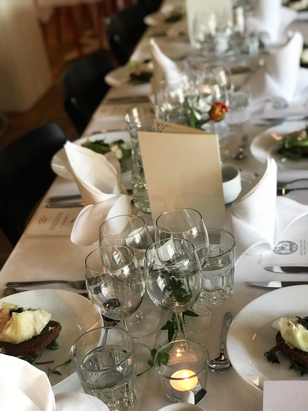 Maten kommer färdig upplagd på fat att ställas fram på ett buffébord, och vi skickar med lådor med påfyllning eftersom vi vet av erfarenhet att gästerna droppar in vid olika tider.