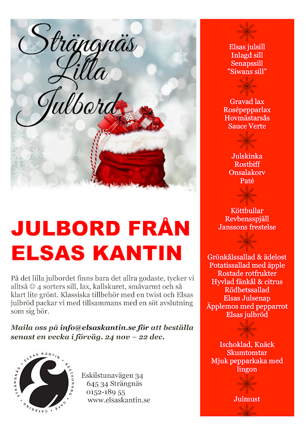 Ät hos oss, tisdag - torsdag från 1 - 21 december, eller beställ Lilla Julbordet för avhämtning. Boka bord eller beställ catering via: